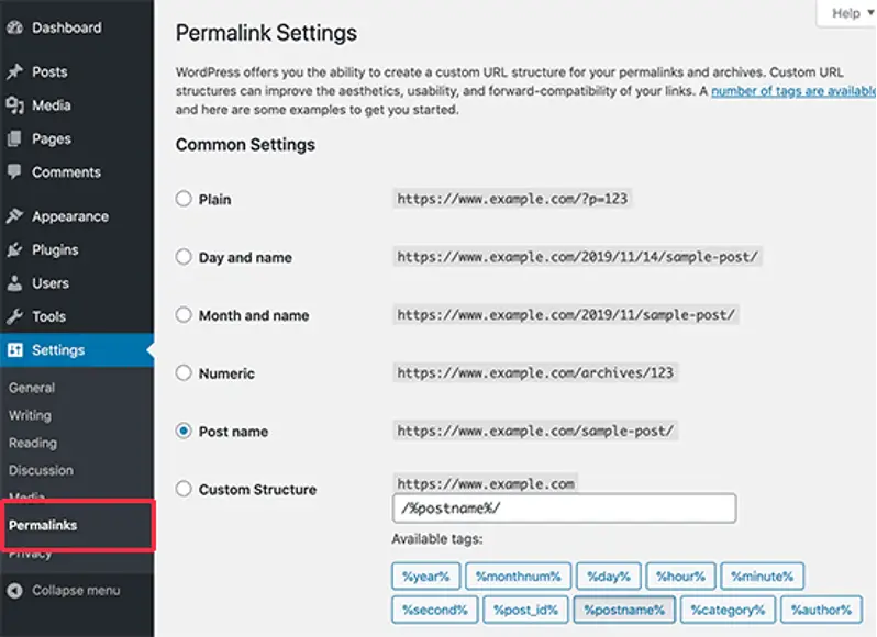 When you first create a WordPress site, the default settings for your permalinks are pretty ugly! Even having the date in the URL isn’t ideal.